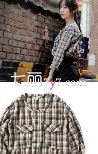 搭配要点:格纹的衬衫是MM们初秋必备的单品,不管是内搭还是外穿都好看,郑秀晶这款衬衫来自Thursday Island品牌,简单的圆领设计展现出性感的锁骨,搭配紧身裤就很好看。