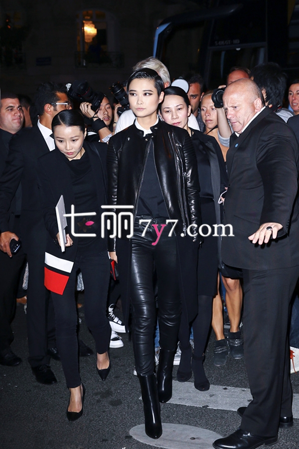 受好友国际顶级设计师纪梵希(Givenchy)创意总监Riccardo Tisci先生亲自邀约,李宇春赴巴黎时装周观赏Givenchy2015春夏女装秀。李宇春一身黑色皮装现身巴黎时装周看秀。秀场门外聚集了大量中外媒体与粉丝。