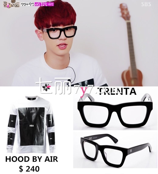 搭配要点:灿烈十分热爱音乐,一回到家就累得躺在床上休息,为了打造出良好的精神状态,黑框眼镜是必备单品,Hood by air的长袖T恤采用拼皮的设计,这样更具时尚Feel,轻松装扮就可以出门了!
