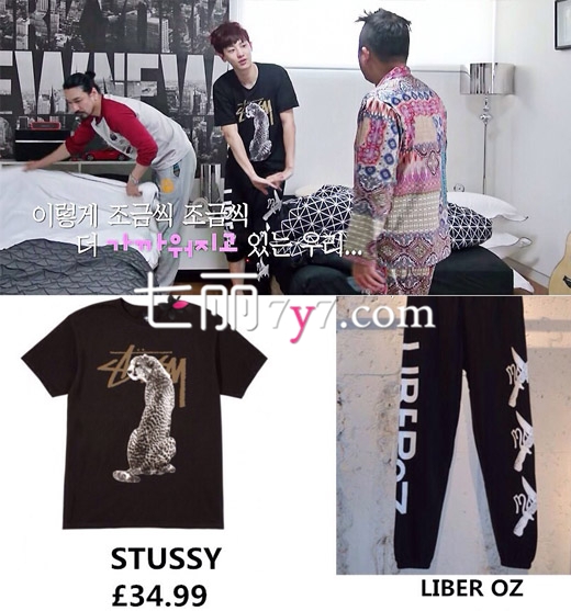 搭配要点:跟申妈妈一个宿舍的灿烈,两人都爱音乐,灿烈身穿STUSSY的印花T恤,胸口的豹子图案十分吸引人,展现出不一样的野性Feel,搭配LIBER OZ的休闲裤,这就是灿烈的居家装扮,依旧潮味十足!
