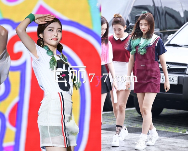 搭配要点:Red Velvet组合都是90后的少女,Joy是团队的忙内,不管是条纹裙,还是背带裙,Joy都穿出自己的Feel,黑白条纹有点轻熟女的味道,包臀的设计让她甜美却不失女人味,右边这套是学院风的代表,甜美清新完美彰显。