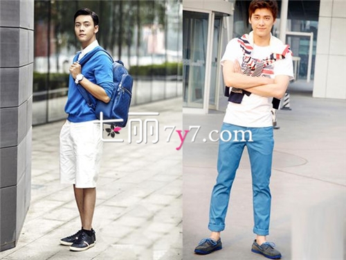 搭配要点:蓝色的针织衫穿在陈伟霆身上很有阳光少年的Feel,加上白衬衣,背个双肩包,学院风型男标配!国民校草李易峰简单的白T加上蓝色裤子,条纹针织衫随意的搭在肩上,阳光帅气!