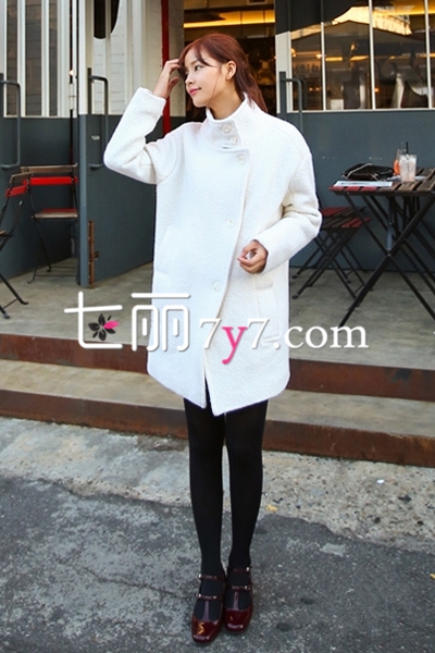 宽松的大衣是MM们必备的单品,今年可要买一件白色的了!这样大衣不挑身材,穿出一份随意自在的Feel,显得更加清纯有活力,想要减龄就是这一套,搭配黑色的打底裤和酒红色小皮鞋,就可以轻松出街了!