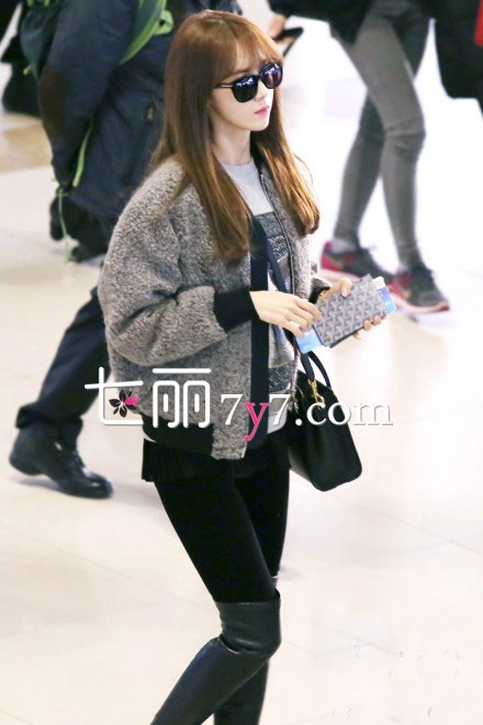 搭配看点:清新女神林允儿,近日的机场装扮都以个性嘻哈风格为主,而这款灰色毛呢棒球服外套,短款版型用黑色与灰色结合,搭配出经典不败的时尚感,下身穿黑色打底裤,配上过膝长靴,性感长腿完美尽显,干练简约女人味魅力秒杀全场。