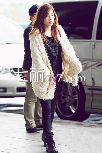 搭配看点:米色的这款开衫毛衣外套,毛茸茸的感觉一摸上去就能感觉到暖和,甜美的色彩更能突出了金泰妍的甜美可爱,内穿黑色豹纹上衣,混搭出一种个性时尚感,配上黑色短靴,突出性感纤细长腿!