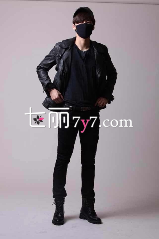 另一张则全身黑色装扮,戴着面罩,这一标志性的装备像极了韩剧《城市猎人》中李敏镐的装扮,展现出十足的男人味,黑色的皮衣很有潮男Feel,内搭黑色的针织衫展现出性感的锁骨,戴上黑色的口罩神秘感油然而生。