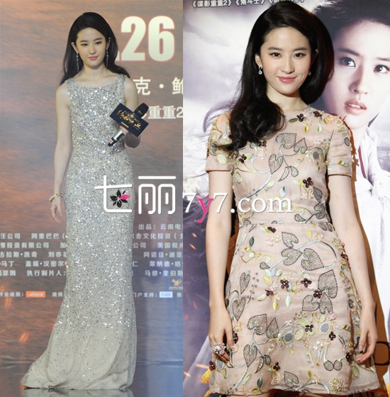 时尚点评:亮片长裙显得很优雅,但是却十分符合刘亦菲的气质。俏皮连衣裙采用了印花的元素,展现刘亦菲轻盈身材。