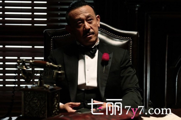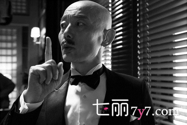 姜文身穿剪裁得体的西服,那个时代的西服一丝不苟、讲究到极点,黑白的搭配也能展现出姜文的男性魅力,胸口那个红玫瑰胸针,十分讨喜,让黑白配的服装更加有亮点。