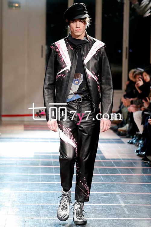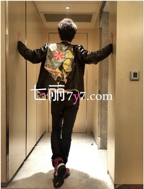手绘的皮衣很少见,证实出它的特别之处和价值所在,皮衣+皮裤的搭配展现出2015年最新潮流,鹿晗穿上手绘皮衣搭配黑色紧身裤,展现出纤细的双腿,姣好的身材令女生都羡慕不已,与模特不同的搭配,却有不一样的效果。