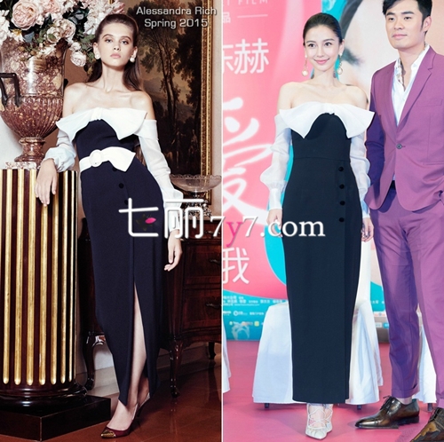 Angelbaby杨颖身穿AlessandraRich2015春夏系列黑白露肩纱袖礼服亮相新电影北京的发布会,一出现秒杀全场,下面一起来看看蝴蝶结连衣裙搭配图片,AB迷们不要错过啦!