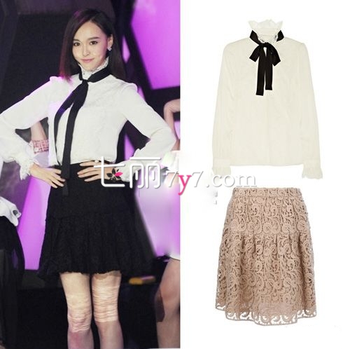黑白搭配也能穿出俏皮可爱的感觉呢,长袖白衬衫搭配黑色蕾丝短裙,温柔淑女的装扮,减龄显嫩,带点学院风的气质,这样减龄的搭配不管是谁穿上都可以Hold住,丝带绑成蝴蝶结的形状更显少女的气质。