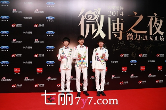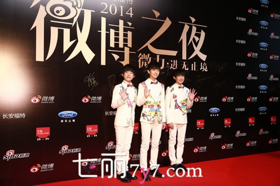 1月15日晚18时,2014新浪微博之夜在北京国贸三期举行,群星璀璨、闪耀亮相。TFboys三位男孩亮相红毯,分享公益心得。