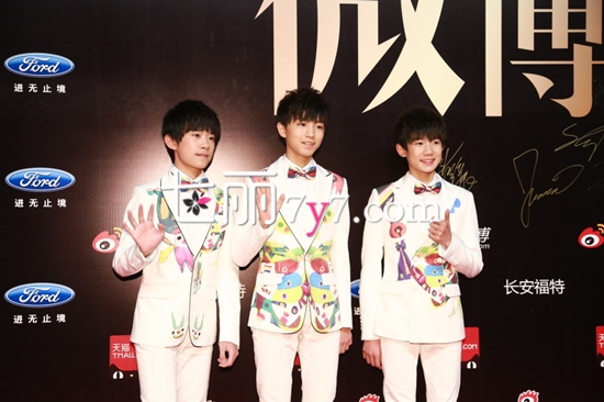 1月15日晚18时,2014新浪微博之夜在北京国贸三期举行,群星璀璨、闪耀亮相。直播TFboys三位男孩亮相红毯,身穿自闭症儿童手绘西装,展现出00后的Feel。