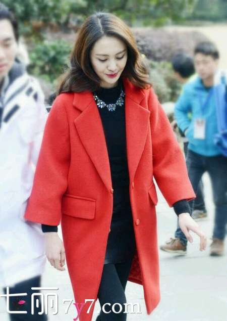 红黑配色的这身装扮让郑爽的气质提升了新高度。朱红色的大衣将郑爽的肤色衬得雪白晶莹,内搭的黑色毛衣非常显气质。为了让整体造型看起来不乏味,造型师还在毛衣上搭配了blingbling的毛衣链。这身搭配让小女神郑爽变身成为了真正意义上的女神。