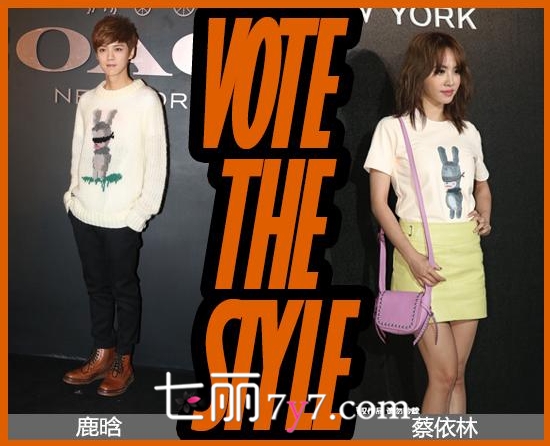 2015年3月4日,蔡依林亮相台北Coach开幕酒会,穿着Coach兔子衫,与鹿晗在2015年1月6日出席Coach北京SKP新光天地精品店开幕时撞衫。一男一女的搭配很像情侣装,两人的搭配谁更萌呢?你更喜欢谁的呢?