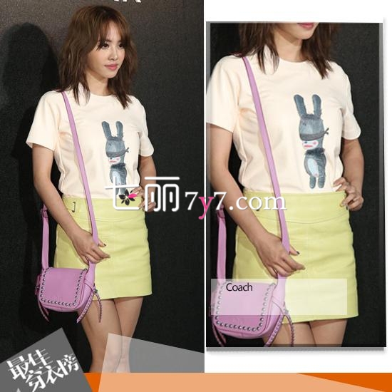 已经35岁的蔡依林一身Coach夏装,兔子t衫非常简单,也是MM们必备的基础款,搭配嫩绿色短裙展现出纤细的腰身,高腰的设计可以拉长腿部曲线,这样才能显高显瘦,搭配粉色的铆钉小包包,显得十分年轻有活力。