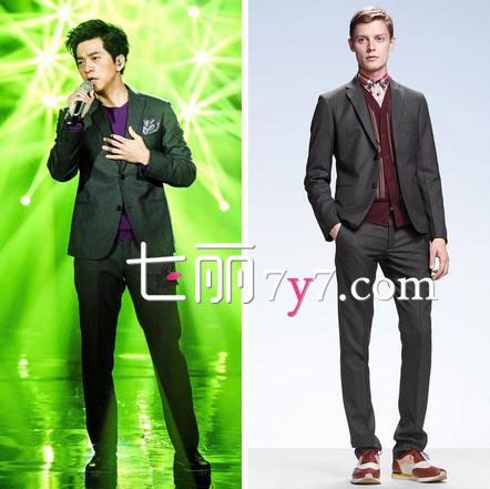 搭配看点:不以高音取胜,却有着透彻心灵歌声的清华男神李健,歌声不但让人心醉,每次出场的服饰也都令人惊艳。这款由BottegaVeneta2015早春系列印花西服套装,亮相于第九场的竞演,加上上衣口袋处放上bandana小方巾,加上相互呼应的紫色,显得朴实但又很闷骚!