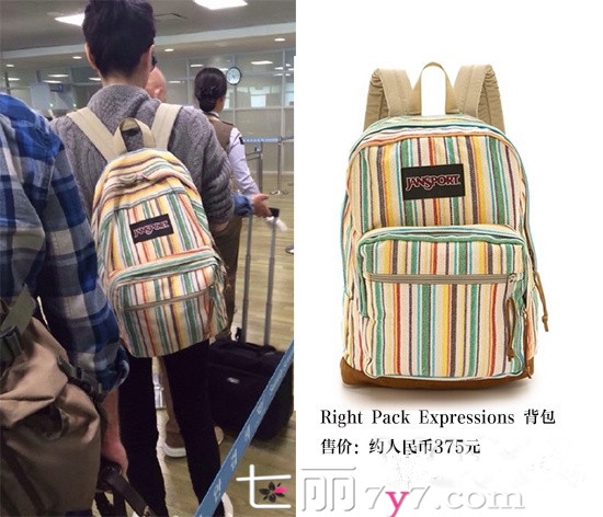 王菲穿着紫色毛衣,黑色紧身裤,背着Right Pack Expressiongs 双肩背包,减龄又休闲,完全看不出来已45岁。