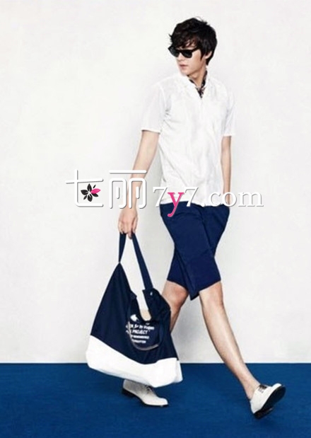 搭配看点:简约的搭配却因为色调的和谐和反复呼应而韵味十足,百搭的白色POLO衫搭配深蓝色中裤,很有型男的沉稳和率性,白色牛津鞋带来一丝时髦感蓝,白拼色手提包既休闲又让造型更具看点。