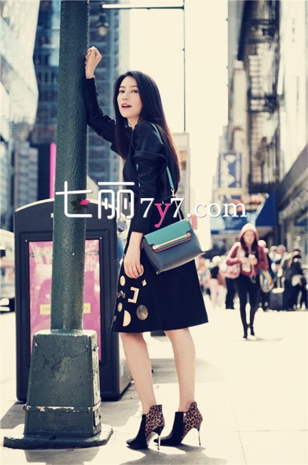 搭配看点:黑色短外套搭配黑色高腰伞裙,这样的搭配比较挑人哦,尤其伞裙还是及膝的长度,个子娇小的MM谨慎尝试哈,一不小心就变成六头身了。这个套型的搭配上,圆圆女神选择将上衣下摆束进裙腰,提升腰线,拉长腿部比例,同时伞裙上的金属元素让造型的时尚指数直线上升。精致的斜挎包很有熟女气息同时也不乏潮流感。豹纹拼接高跟鞋带来一丝野性气息,同时也拔高女神的海拔,更添气场。