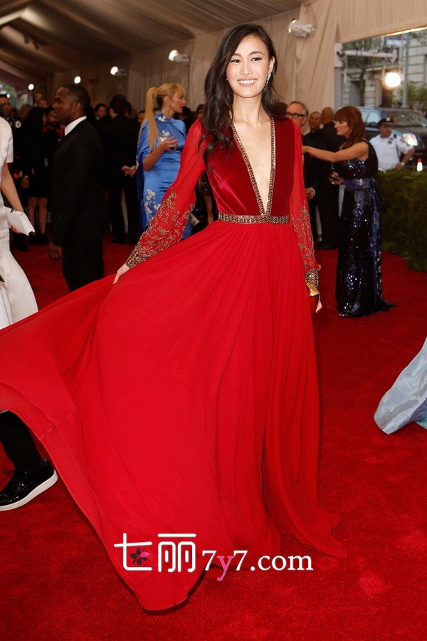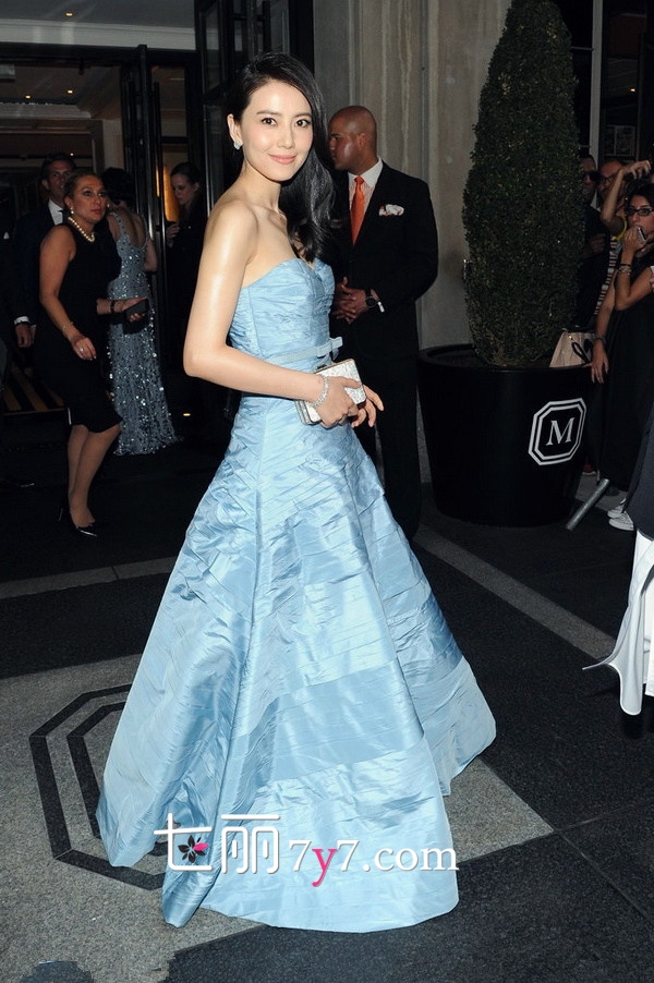 高圆圆身着Mickael Kors礼服,十分的清爽纯净,不过好像和晚宴主题“中国风”关系不大。