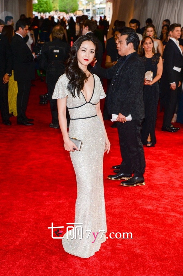 汤唯一身银色礼服,十分的修身,也还是难以体现中国风味。
