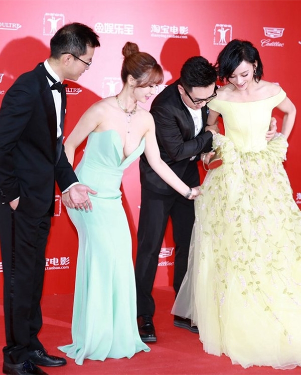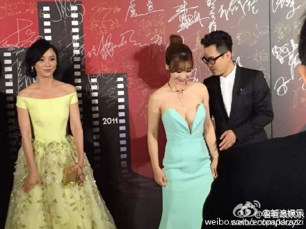 柳岩身着蓝色开胸礼服亮相第18届上海电影节,礼服简约性感的剪裁秀出柳岩胸前风光,淡蓝色调十分淡雅清新,与柳岩娇嫩肌肤互相映衬,十分美艳。网友戏称,站在一旁的大鹏,眼神不知如何安放。