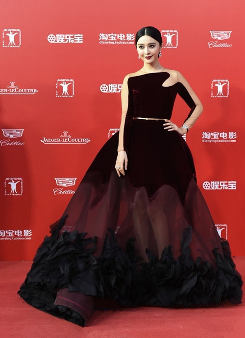 范冰冰一身绛红色拼接礼服亮相第18届上海电影艺术节,依旧是一贯的王者气场,礼服下摆的透视和拼接设计十分美艳,腰部的金属腰带更添精致,配上典雅的妆容和盘发,范式优雅与气场展现得淋漓尽致。