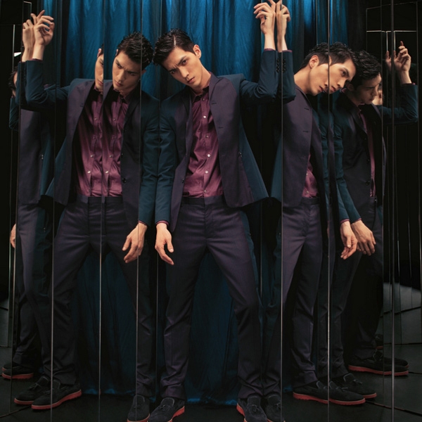 顾准作为电影中的高富帅角色,这款暗紫色的西装低调而华丽,简单中带有无尽的绅士风度,与其他三位美男主演的华丽风格形成强烈对比。