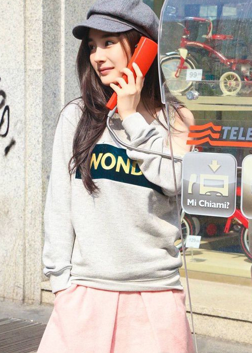 卫衣是不少女生喜欢的一种单品,杨幂这款灰色字母卫衣搭配粉红色短裙很清新甜美,颇有一丝学生气息,还不缺乏时髦感,轻松展现出时尚休闲风。