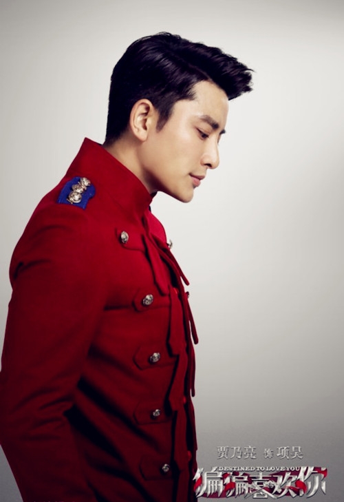 贾乃亮在《偏偏喜欢你》剧中有多套制服造型,这张剧照中选用了红色制服上衣搭配藏蓝色西裤,浓墨重彩的搭配十分抢眼,比较贴合男主角霸气的形象。