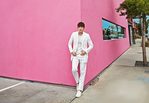 在粉色的墙的背景下,池昌旭穿着白色西装,如白马王子般俘获女人心,如一股清爽的风扑面而来。仿佛这一转角就能遇到爱。