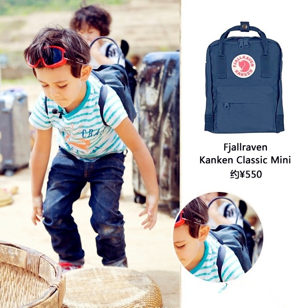 《爸爸去哪儿》第三季开播,火华社长刘烨背着1000多RMB的新秀丽双肩包华丽亮相,混血儿子刘诺一则背着RMB550的Fjallraven经典迷你双肩包,穿着红色匡威帆布鞋酷酷的登场。混血王子诺一各种T恤搭配牛仔裤的简约造型十分清新有型,轻轻松松比火华社长帅出新高度。