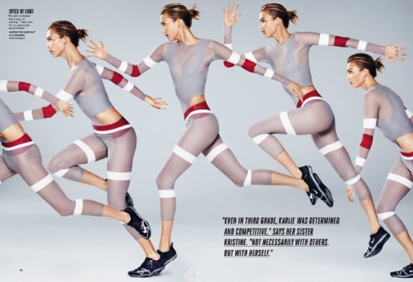 欧美当红超模KarlieKloss出镜美国《Self》杂志2015年8月刊封面大片,身着运动装的KarlieKloss大秀完美曲线,轻盈的身姿与健美的身躯都是平时坚持健身与绿色饮食的好结果,下面就赶紧来看看KarlieKloss最新封面大片吧。