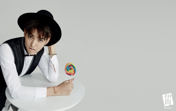 西装夹克配白色衬衫,再配上一顶黑色的礼帽。手上拿着恶意卖萌的棒棒糖,啊啊啊,请问能分我一半么。