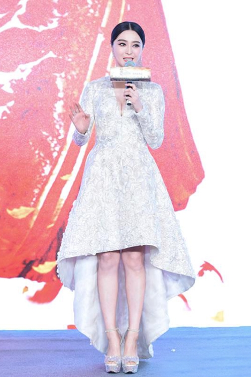 范爷在发布会上祭出了自己的新宠,这身白色的连衣裙穿在她身上恰到好处深深的事业线和美腿都晃的人无法离开视线。除此之外她在发布会上带的首饰也都是价值不菲。除了这次发布会,首映的发布会范冰冰更是穿上了D&G2015的秋冬定制。还配上了一整套萧邦2015年高级珠宝及腕表。