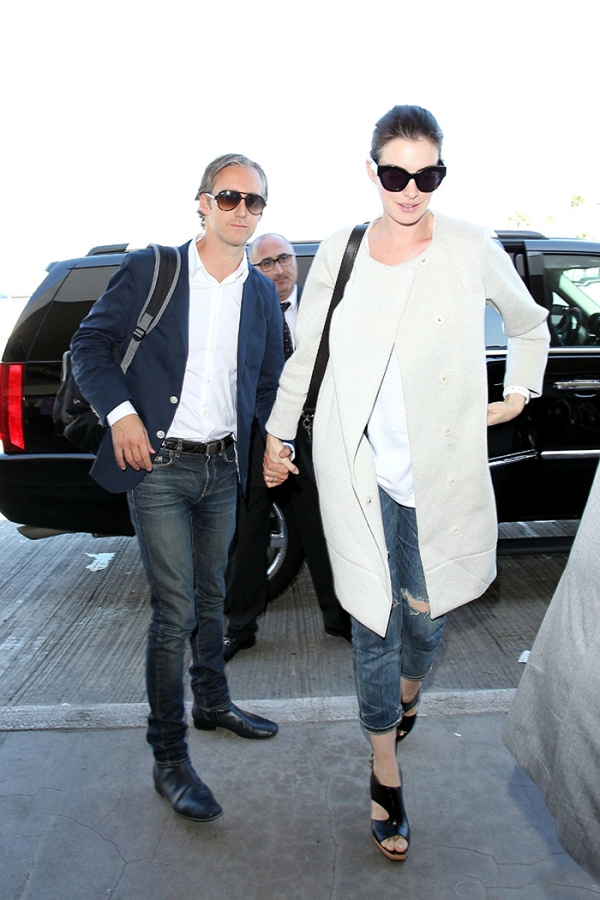 今年红透半边天的破洞牛仔裤怎么能不进入明星搭配的示范中呢?上半身极简的穿着,配上下半身略微不羁的打扮,混搭风就是这么简单的事。