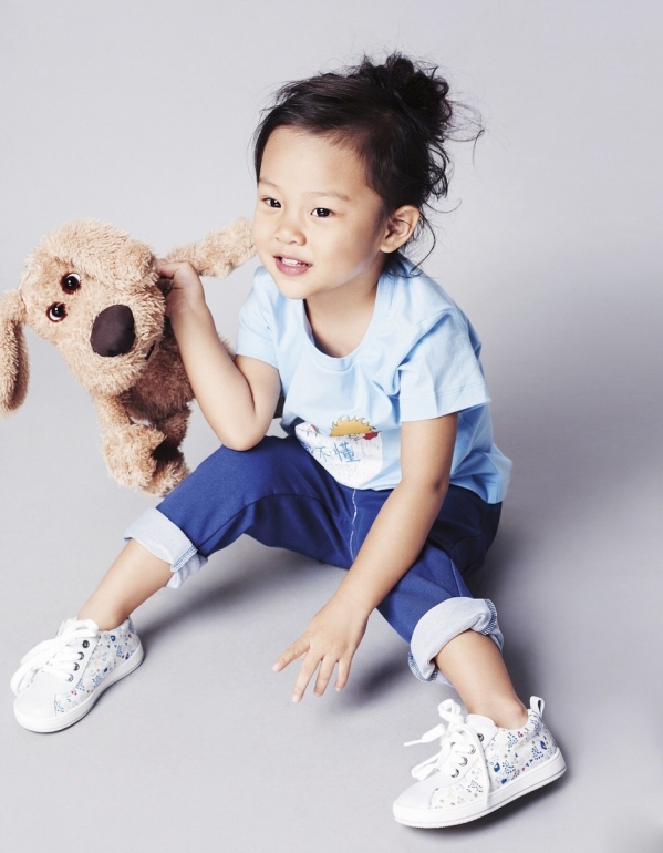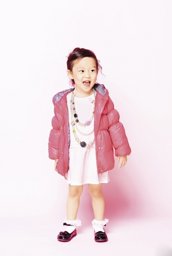 最简单的穿着满满的都是童真的味道,胸前的logo超可爱的配上粉红色的裤子,让平时霸道的馨爷也有了几分小可爱的身影。