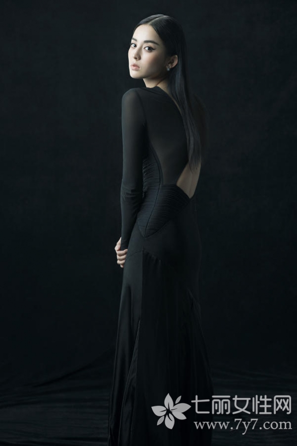 一件黑色露背长裙将古力娜扎的曲线勾勒得性感迷人,背部镂空的设计也尽显女性魅力。