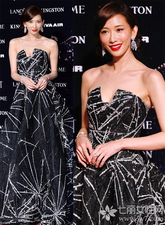女神林志玲这次也在着装上下足了功夫,以一席ZuhairMurid 2015秋冬高级定制黑白抹胸长裙,傲人的上围,在颇有心机的剪裁修饰下,让人看得恍惚沉醉。