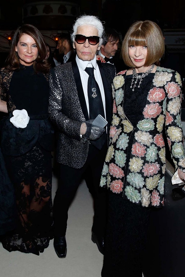 Natalie Massenet, Karl Lagerfeld, and Anna Wintour
