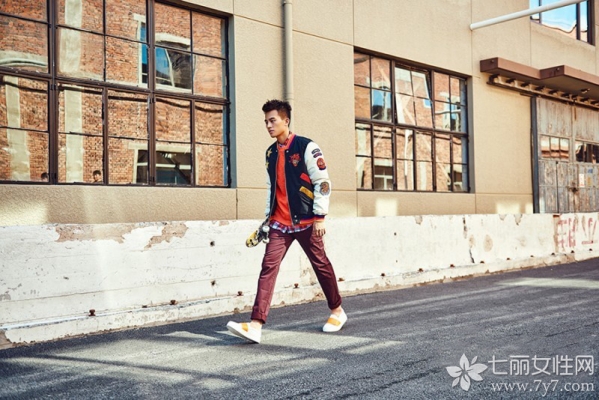 而另一组“小飞侠”造型中,欧豪身着Diesel棒球外套,搭配TopMan橙色毛衣,看起来健康而有活力,下配一双Bing Xu拼色休闲鞋,完美演绎出街头男孩的潮流和个性不羁。