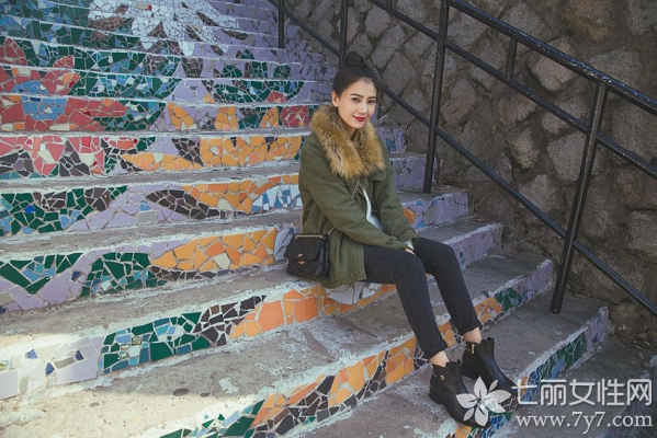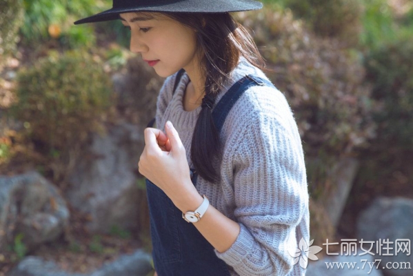 何穗最新街拍,灰色毛衣+墨绿色光泽感半裙,文艺慵懒,少女感十足。马海毛毛衣来自H&M,手提包和粉色毛拖鞋均来自Gucci,半裙来自Tibi 2016