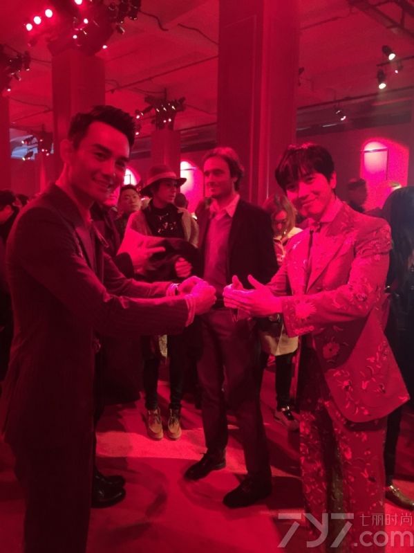 不过郑容和的脸型的确是精致,典型的韩国花美男形象,但还是被凯凯的强大气场压下,两人的合照总有种“夫妇”一同看秀的既视感!