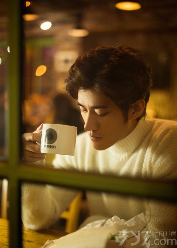 一件白色高领毛衣配上中分发型,尽显王子般的梦幻气息,看起来暖意十足。