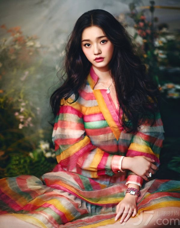 林允拍摄的这组充满着森女系色彩的唯美大片,身穿具有春天气息的不同服装,绚丽的颜色,时而倚靠,时而轻抚花草,与大自然和谐融为一体,显得尤为梦幻迷人。
