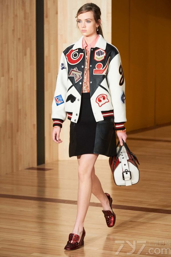 而本季的Coach大秀服装加入到更多极富魅力又充满怀旧色彩的元素,品牌执行总监Stuart Vevers将皮草,皮革面料与充满年轻活力的波点,碎花,格纹和街头印章元素相结合,使之显得愈发年轻化,为摩登城市带来了纯正的美式风潮。