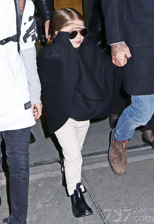 投胎是门玄乎的学问,但搭配不是。看看小七情人节的出街造型。Burberry军装斗篷、黑色切尔西靴、再搭上Ray-Ban Aviator的墨镜。随着年纪的长大,小七出街也是架势越来越足,一出机场就用手遮住脸,在家里左右护法的带领下走出机场。顺便一提,喜欢这件头蓬的姑娘,Burberry有成人款,请叫我雷锋不用谢。