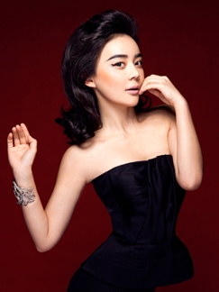 高圆圆红色套装写真 复古红唇释放新年喜庆