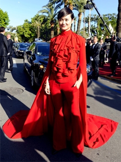 高圆圆红色套装写真 复古红唇释放新年喜庆